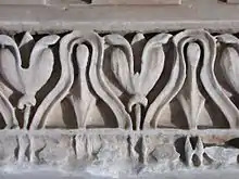 Rais-de-cœur (also known as leaf-and-dart and heart-and-dart)[1] is an ornamental motif made up of heart-shaped leaves (or waterleaves inside hearts)[2] alternating with spearheads (or darts). This motif was used in Ancient Greek and Roman architecture. It was taken up again during the Renaissance, abundantly in the 18th century, being used in the Louis XVI style.[3]