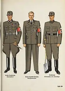 Uniforms for Arbeitsführer, Oberfeldmeister and Arbeitsmann of the RAD. Plate from Organisationsbuch der NSDAP 1943.