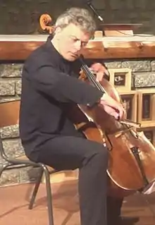 Since 2009, he has been vice-president of the "association Talents & Violoncelles,"[3] whose objective is to lend instruments to young cellists from modest backgrounds. The association brings together luthiers, donors and young virtuosos: it supports both the creation of cellos from the great tradition of French lutherie and the young musicians too often deprived of good instruments. This initiative has been welcomed by the music press.[4]