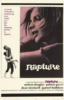 Rapture (French: La fleur de l'âge) is a 1965 drama film directed by John Guillermin, and starring Melvyn Douglas, Patricia Gozzi, and Dean Stockwell. It is reportedly Guillermin's own favorite among his films.[1] His widow Mary said it "was the only film he directed that wholly satisfied his vision as an artist."[2]
