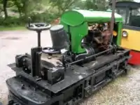 In December 1929, a 4 ft 8+12 in (1,435 mm) standard gauge 0-6-0 diesel locomotive was obtained to work the Ravenglass-Murthwaite section. It was built by Kerr Stuart (works number 4421) and had a six-cylinder, 90 horsepower (67 kW), McLaren-Benz engine. Transmission was mechanical and final drive was by roller chains. In 1955 it was sold, through a dealer, to the National Coal Board for use at Wingate Grange Colliery, Durham. A new Dorman engine of 90 horsepower (67 kW) was fitted in 1960.[9] It is now preserved at the Foxfield Light Railway,[10] restored to original external condition, and was displayed at Ravenglass in the summer of 2000.