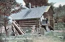 Mason A. Walton lived for 33 years in a house he built in the woods in 1884. He came to be known as "The Hermit of Gloucester."[3][4] He published a book, A Hermit's Wild Friends.[5] A plaque attached to a boulder marks the site of the cabin.