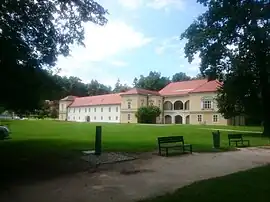 The parish church in the settlement is dedicated to Saint Giles and belongs to the Roman Catholic Archdiocese of Maribor. It is first mentioned in written documents dating to 1331. It was re-vaulted in the 17th century.[5]
