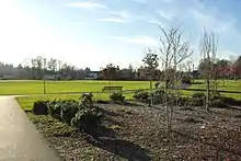 In 1999, Hillsboro bought a 9.6-acre (39,000 m2) parcel for park to be built at Cornelius Pass Road and Francis Street.[2] The land, which abuts Reedville Creek, was a filbert orchard when the city made the purchase.[3] That same year the city announced plans to build a city owned skatepark at a then undetermined location.[2] In 2001, the parks department finalized plans for the park, which included parking, basketball courts, sports fields, tennis courts, play equipment, and the skatepark.[3]