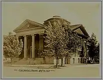 First Baptist Church on the corner of Victoria Avenue and Lorne Street, was opened in 1911 and its gold organ pipes first heard in 1912. The church was renowned for its large domed ceiling and chandelier. The Institute for stained glass in Canada has documented the stained glass at First Baptist Church.[54] The 1912 Regina "Cyclone" severely damaged the church but it was soon restored.[55] Unlike other imposing church buildings in downtown Regina and the East End,[56] First Baptist survives as a major landmark.
