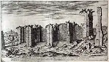 In the 180s, a bank and exchange for Christians operated in this region.[3] The region also contained the station of the fourth cohort of the Vigiles. At the turn of the 5th century, the Regio contained 17aediculae (shrines), 113 domūs (patrician houses), 27 horrea (warehouses), 63 balneae (bath houses) and 81 loci (fountains).[4]