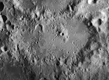 Regiomontanus is an ancient lunar impact crater located in the southern highlands region to the southeast of Mare Nubium. It is joined at the chaotic northern rim by the crater Purbach, and to the south-southeast is Walther.
