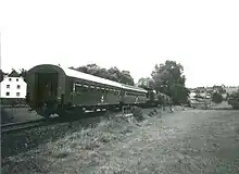 A military train coming from Reitzenhain suffered an accident on 30 May 1945 in Hüttengrund, a valley east of Marienberg. The train left Reitzenhain around 22:00 and was hauled by a Class 52 steam locomotive. It transported a tank unit of Red Army. Because of a too high load, the train crew and the station crew initially refused to let the train depart and requested a second locomotive for braking purposes. The Soviet commander, however, threatened the railway personnel and forced the departure. A safety stop in Gelobtland was intended, but proved impossible due to insufficient braking power. Instead, the speed of the train increased in the following steep section. One tank wedged in a cutting in Hüttengrund, after centrifugal forces had made its turret turn, and its gun had touched the rocky wall. Five flatcars detached from the train, and the load of all following cars was thrown off.[2][3] The remainder of the train could only be stopped in Pockau.[4] The number of victims is not exactly known;[2][4][5] one source states 18 dead.[3] The train crew, the Reitzenhain station master and another Reichsbahn official were made responsible for the accident[4] and were detained. The station master was summarily shot one month later. Of the remaining prisoners, only the locomotive fireman survived.[2]