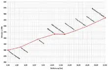 | Minimum radius | 224 m (735 ft) | ||||||||||||||||||||||||||||||||||||||||||||||||||||||||||||||||||||||||||||||||||||||||||||||||||||||||||||||||||||||||||||||||||||||||||||||||||||||||||||||||||||||||||||||||||||||||||||||||||||||||||||||||||||||||||||||||||||||||||||||||||||||||||||||||||||||||||||||||||||||||||||||||||||||||||||||||||||||||||||||||||||||||||||||