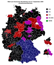 This is a breakdown of the results of the 2009 German federal election. The following tables display detailed results in each of the sixteen states and all 299 single-member constituencies.