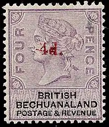The first revenues of the Bechuanaland Protectorate were issued in 1887, and were British Bechuanaland postage & revenue stamps overprinted Protectorate. Like the original issues these were valid for both postage and revenue, but were mainly used fiscally. From 1903 to 1913, revenues of the Cape of Good Hope and Transvaal were overprinted, and from 1914 to 1942 similar overprints were made on South African revenues. In 1918 British Bechuanaland 1s stamps were surcharged £5 for use as revenues however one exists postally used. In 1932, pictorial designs with the portrait of King George V similar to the contemporary postage stamps but with a different inscription were issued. Similar issues but with the portraits of King George VI and Queen Elizabeth II followed in 1938 and 1955 respectively. In 1961 the 1955 stamps were issued surcharged in South African rand. In 1965, a set of six stamps with face values from 25c to 4R was issued for Local Government Tax.[1]