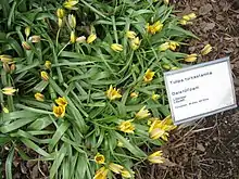Tulipa turkestanica, labeled with both the scientific name and the Icelandic name