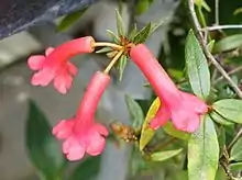 Rhododendron rarum is a rhododendron species native to the Central and Bismarck Ranges of Papua New Guinea. It is a compact prostrate shrub with tubular, red flowers and narrowly elliptic leaves.