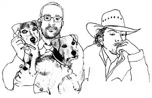A self-portrait of Cortes (right), with F. Bowman Hastie, with whom he published I Don't Want To Blow You Up!