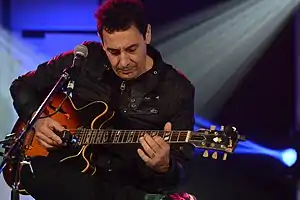 He is considered one of the best musicians and guitarists of Argentine rock.[4] He is also known for his virtuosity on the guitar, and particularly for his version of "Voodoo Child" by Jimi Hendrix, which he has played on his guitar using his teeth or objects thrown by the public including carrots, slippers, sandals, tennis balls, or canes for the blind.[5]