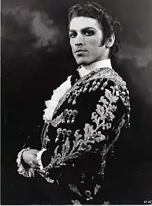 Cragun was described as a big, handsome man, with a powerful physique who danced with dazzling virtuosity and distinct virility, a perfect foil for the brilliant technique and delicate femininity of Haydée.[7] Another description said that Cragun was blessed with a perfect physique for dancing, Cragun was a virtuoso of the ballet stage, equaled by only a few male dancers of his generation.[8] He embodied the explosive, colorful form of classical ballet that was sometimes called "the Stuttgart style." Flawless triple tours en l'air were his trademark, an athletic feat accomplished only by such bravura dancers as Edward Villella and Mikhail Baryshnikov on rare occasions.[9]