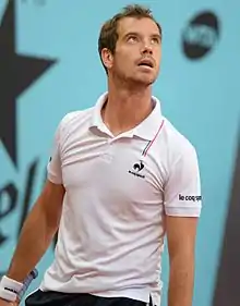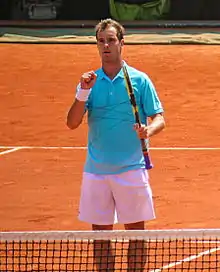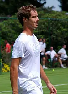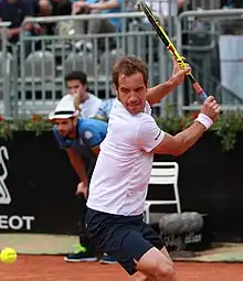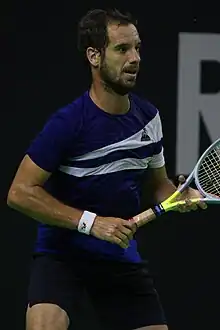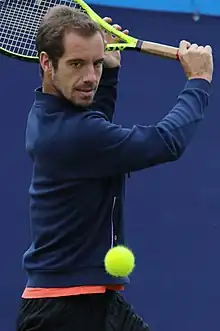 Richard Gabriel Cyr Gasquet (French: [ʁiʃaʁ ɡaskɛ];[3] born 18 June 1986) is a French professional tennis player. His career-high ATP singles ranking is world No. 7, attained on 9 July 2007.[4] He has won 16 singles titles on the ATP Tour tied for seventh most among active players. He is also fourth among active players with over 600 career match wins.[5][6] His best performances in Grand Slam singles tournaments have been three semifinal appearances, two at the Wimbledon Championships (in 2007 and 2015) and once at the US Open (in 2013). His best performance in ATP World Tour Masters 1000 singles tournaments was being the runner-up in Hamburg in 2005 and Toronto in 2006 and 2012. He won the mixed doubles title at the 2004 French Open, partnering with Tatiana Golovin. He also won the men's doubles Olympic bronze medal in 2012 with his doubles partner Julien Benneteau. Gasquet is best known for his elegant groundstrokes and his one-handed backhand.