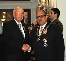 Long (left), after his investiture as an Officer of the New Zealand Order of Merit by the governor-general, Sir Anand Satyanand, in 2011