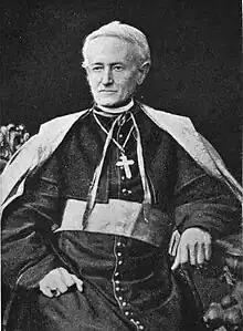 Whelan invited several religious congregations to send followers to the diocese to provide needed social services. By the time he died, the diocese had 48 churches, 29 priests, three religious congregations of women, six schools for girls, a school for boys, an orphanage, and a hospital.[1] From 1869 to 1870, Whelan attended the First Vatican Council in Rome, where he opposed papal infallibility because he thought such a declaration would be untimely.[3]