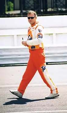 Ricky Rudd walks down pit road, before qualifying at Pocono Raceway 1998