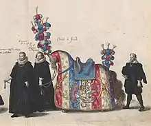 Riderless jousting horse of Albert VII, Archduke of Austria in his funeral procession, 1623 (etching with hand coloring by Jacob Franquart)