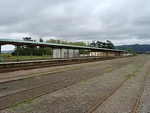 154.62 km (96.08 mi) Pahiatua 40°26′42.12″S 175°48′54.42″E / 40.4450333°S 175.8151167°E / -40.4450333; 175.8151167 This station served the town of Pahiatua.