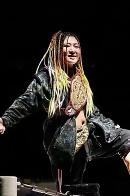 Yamashita took part in various notable tournaments of the promotion. She started with Catch The Wave 2014 Young Block, where she competed against Kaho Kobayashi, Sumire Natsu, Risa Sera, Fairy Nipponbashi and Shiori Akiba, scoring a total of five points.[12] At the 2015 edition of seniors, Yamashita entered last as chosen by Mikiko Futagami and finished on the last position after competing against Kana, Hikaru Shida, Yumi Ohka, Ryo Mizunami, Misaki Ohata, Kaho Kobayashi, Maika Iida, Cherry and Sakura Hirota.[13] Her best result was at the 2018 editionwhere she placed herself in the Block A, competing against Nagisa Nozaki, Ryo Mizunami, Yumi Ohka, Asuka and Miyuki Takase, winning it with a total of nine points, and defeating Ayako Hamada in the finals to win the tournament.[14] She also competed in the 2014 Dual Shock Wave tournament where she teamed up with Sawako Shimono as Satsuma Kotsuji-gun, fighting Kyoko Kimura and Tomoka Nakagawa into a time-limit draw, succeeded by Yamashita falling short to Nakagawa in an overtime singles match.[15] At the 2015 edition, she teamed up with Kaho Kobayashi as Fafrotskies, falling short to Haru☆kura (Kayoko Haruyama and Tsubasa Kuragaki) in a first-round match on October 2.[16] At the 2016 edition, she scored her best performance, teaming up with Dynamite Kansai as GReeeeN, defeating Chōjin Shitei Konbi (Mika Iida and Yuki Miyazaki) in the first-round match,[17] fWo (Fairy Nipponbashi and Kyusei Sakura Hirota) in the second-round match,[18] obtaining a bye victory in the semi-finals, and finally picking up the decisive victory against Redbull (Chihiro Hashimoto and Ryo Mizunami) in the finals on October 10.[19]