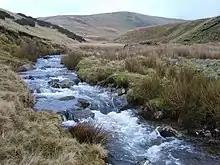 The river rises at Lankrigg Moss and flows southwards for 10 miles (16 km)[1][2] through an ancient landscape, flowing under Monks Bridge (a packhorse bridge) and by the site of Calder Abbey, as well as several tumuli and other mysterious monuments.[3] It also runs past and (indirectly) gives its name to Calder Hall, site of the world's first commercial nuclear reactor.[4][5]
