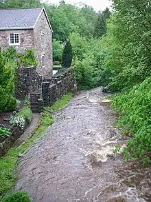 "Clydach" is a common name for watercourses in south Wales and is thought to derive from an old Welsh word for "swift" or possibly "stoney", both of which would apply in this case.[2]