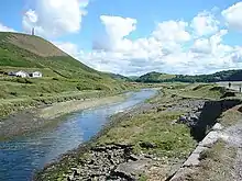 The River Ystwyth Welsh: Afon Ystwyth [ˈəstʊɨ̯θ] "winding river"[1]) is a river in Ceredigion, Wales. The length of the main river is 20.5 miles (33.0 km). Its catchment area covers 75 square miles (190 km2).[2] Its source is a number of streams that include the Afon Diliw, located on the west slopes of Plynlimon on the border of Ceredigion and Powys in the Cambrian Mountains.[3] The Ystwyth flows westwards before its confluence with the Afon Rheidol and the estuary at Aberystwyth to drain into Cardigan Bay.[4]