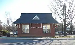 Riverdale is a passenger rail station on the MARC Camden Line between Union Station in Washington, DC and Baltimore's Camden Station.[4] The station is part of the Riverdale Park Historic District, which has been part of the National Register of Historic Places since 2002.[5]
