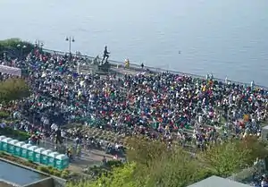 Crowds watching Thunder Over Louisville gather in the plaza