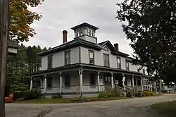 The Riverside estate is located south of downtown Lyndon, on the east side of Lily Pond Road at its junction with Red Village Road. The estate now covers about 8 acres (3.2 ha), most of which is on the east side of Lily Pond and Red Village Roads; a small portion is on the west side of Red Village Road. The property includes three buildings: the main house, a barn, and a granary. All were built between 1866 and about 1880, and exhibit Italianate styling. The house is 2+12 stories in height, with a hip roof topped by an elaborate square belvidere. A porch wraps around two sides of the main block, supported by chamfered square posts with brackets at their tops, and with spindled balustrades. Its interior retains original period decorative elements. A 2+12-story gabled ell extends to the right side. East of the house stands a c. 1866 barn, whose Italianate features include a small square cupola, and a smaller c. 1880 granary, which has an octagonal cupola and bracketed eaves.[2]