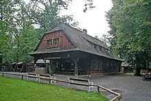 Rožnov pod Radhoštěm is known for the Wallachian Open Air Museum. It is the largest museum of its kind in the country. The life of the ancestors and folk architecture are presented in three separate areas called Little Wooden Town, Wallachian Village and Water Mill Valley.[10] It is one of the most visited tourist destinations in the Czech Republic.[11]