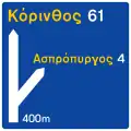 | Expressways & primary roads | White | Blue | Yellow (Greek) White (English) | ![]() | |||