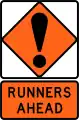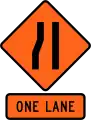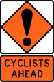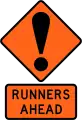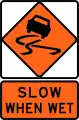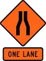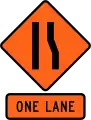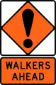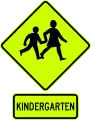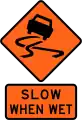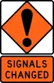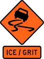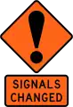 Warning signs are yellow diamonds and thus follow the American MUTCD design.
