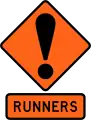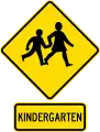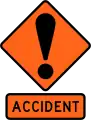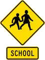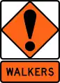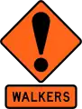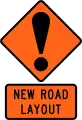 Most of these signs were only introduced between 1987 and 1990, replacing older-style signs with white text on black backgrounds - square with a red border for regulatory signs and diamond with a yellow border. Warning signs and the Give Way sign were replaced from 1987, regulatory signs from 1989, and parking signs from 1990.[2] The only signs that remained the same were the Stop sign and the speed limit sign (although the "km/h" legend from metrication was removed). Some of the older signs can still be seen on some rural roads. New Zealand drives on the left.