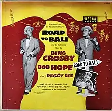 Road to Bali is a Decca Records studio album by Bing Crosby, Bob Hope and Peggy Lee of songs featured in the film Road to Bali released in 1952. All of the songs were written by Jimmy Van Heusen (music) and Johnny Burke (lyrics). The songs were featured on a 10” vinyl LP numbered DL 5444[1] and in a 3-disc 45rpm box set numbered 9-375.[2]