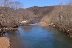 Roaring Creek has three named tributaries: South Branch Roaring Creek, Lick Run, and Mill Creek.[1] South Branch Roaring Creek joins Roaring Creek 4.28 miles (6.89 km) upstream of its mouth. Its watershed has an area of 35.9 square miles (93 km2). Lick Run joins Roaring Creek 14.08 miles (22.66 km) upstream of its mouth. Its watershed has an area of 5.97 square miles (15.5 km2). Mill Creek joins Roaring Creek 15.02 miles (24.17 km) upstream of its mouth. Its watershed has an area of 4.98 square miles (12.9 km2).[2]
