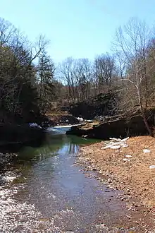 Roaring Creek is a tributary of the Susquehanna River in Columbia County and Montour County, in Pennsylvania, in the United States. It is slightly more than 20 miles (32 km) long and flows through Roaring Creek Township, Locust Township, Catawissa Township, Cleveland Township, and Franklin Township in Columbia County and Mayberry Township in Montour County.[1] The watershed of the creek has an area of 87.3 square miles (226 km2). It has three named tributaries: South Branch Roaring Creek, Lick Run, and Mill Creek. The creek is not considered to be impaired and is not affected by coal mining. However, its watershed has been impacted by human land use. Claystones, conglomerates, sandstones, siltstones, and shales all occur within the watershed. The creek flows through a gorge in its lower reaches, along the border between Columbia County and Montour County.