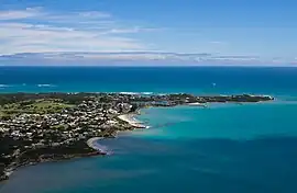 Robe is a town and fishing port located in the Limestone Coast of South Australia. The town's distinctive combination of historical buildings, ocean, fishing fleets, lakes and dense bush attracts many tourists. Robe lies on the southern shore of Guichen Bay, just off the Princes Highway. At the 2021 census, Robe had a population of 1252.[7] Robe is the main town in the District Council of Robe local government area. It is in the state electorate of MacKillop and the federal Division of Barker.