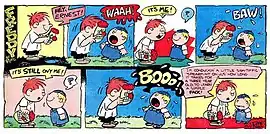 Ken Pierce Books did a 64-page book collection of the Freddy daily strips that ran from May to October in 1956.[5] Dell's Freddy comic book, which ran for three issues in 1963–64, was not by Baldwin but was drawn by Bob Gustafson.
