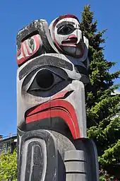 Detail of "Gyaana", totem pole designed by Davidson and carved by him and others, Lions Lookout Park, White Rock, British Columbia, Canada.