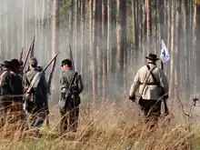 Most units have a marching and a combat formation. Units in marching formation have less terrain cover and if infantry units are attacked in marching formation, the attacker will fire a volley first, potentially inflicting heavy losses. Artillery units cannot fire back at all if attacked while limbered. Cavalry units have a mounted and dismounted formation and may attack in either one; mounted cavalry have more firepower but less cover which results in higher casualties while attacking or defending. Infantry attacked twice in the same turn from opposite sides will be caught from behind by the second attack and treated as if it were in marching formation.