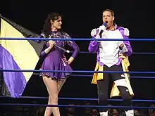 On March 27, 2010, Evans made his debut for Ring of Honor (ROH), working in a dark match, where he, David E. Jones and Ryan Stone were defeated by Johnny Goodtime, Johnny Yuma and Mike Sydal.[12] On January 22, 2011, Evans, under the ring name "Barrister" R.D. Evans, made his television debut at the Ring of Honor Wrestling tapings, where he was unveiled as one of the new members of Prince Nana's The Embassy stable.[13] Though he has not wrestled a single match for ROH since his dark match, Evans has been a part of several storylines involving The Embassy, including filing a lawsuit against Homicide, accusing him of attempted murder, assault and battery, attempted sexual assault and battery, sexual harassment and intentional infliction of emotional distress,[6][14] and making various business deals for the stable, including one that resulted in its name being changed to The Embassy Limited, all with a goal of making Tommaso Ciampa a champion.[6][15] However, after Prince Nana struck a deal with Truth Martini and cost Ciampa his match for the ROH World Television Championship against House of Truth member Roderick Strong, Ciampa turned on Nana at the June 29 tapings of Ring of Honor Wrestling,[16] dissolving The Embassy Limited and making Evans his new primary manager.[17][18] Evans continued managing Ciampa until August, when Ciampa was sidelined with a torn anterior cruciate ligament (ACL).[19][20][21]