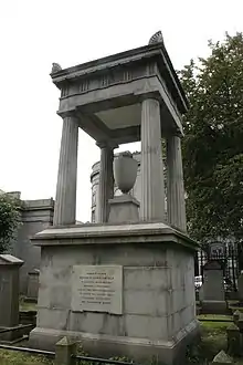 He died in 1829. He is buried in the churchyard of the Kirk of St Nicholas on Union Street in Aberdeen. His huge monument (the largest in the churchyard) lies close to the main entrance on Union Street. The grave was designed by the Aberdeen architect James Smith.[4]