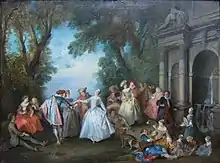 - ↑ Holmes, Mary Tavener. Nicolas Lancret: Dance Before a Fountain, Getty Publications, 2006, p. 91 ISBN 9780892368327