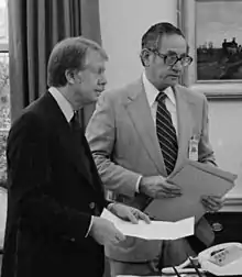 During the negotiations between Egyptian Anwar El Sadat and of Israeli Prime Minister Menachem Begin at Camp David, Lipshutz provided input from leaders of major Jewish organizations regarding the peace process. In a statement issued by the former president, Carter said that Lipshutz's "insights played a key role in many White House initiatives and decisions" at Camp David and at other points during his presidency, including his part in the drafting of the presidential order that led to the creation of the United States Holocaust Memorial Museum in Washington, D.C.[2] After leaving the White House in October 1979, he was replaced by Lloyd Cutler.[3]