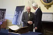 Archivist of the United States Allen Weinstein with Edsel after the donation of Nazi photograph albums.
