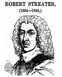 Robert Streater (1621–1679)[1] (also known as Streeter), was an English landscape, history, still-life and portrait artist, architectural painter, and etcher. He was Serjeant Painter to King Charles II, and decorated the ceiling of Christopher Wren's Sheldonian Theatre in Oxford.